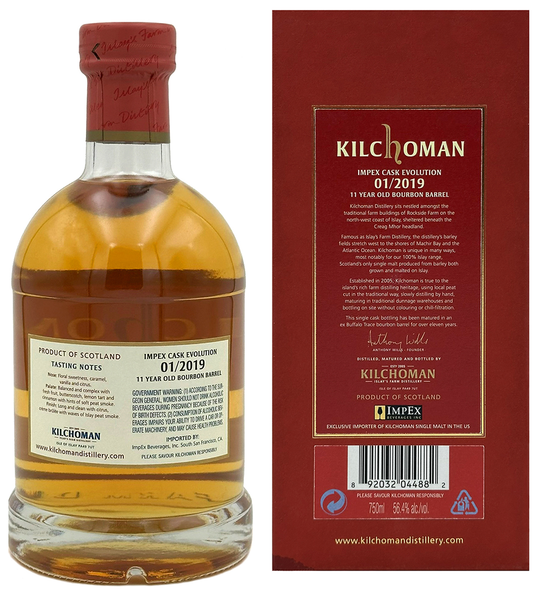 Als 7. Ausgabe seiner im Jahre 2016 gestarteten Serie mit ausgewählten Kilchoman-Einzelfassabfüllungen Cask Evolution, veröffentlichte der US-amerikanische Importeur ImpEx Beverages im Frühjahr 2019 diese Single Cask Release. Der Whisky lagerte über 11 Jahre in einem Ex-Bourbon Barrel von Buffalo Trace.