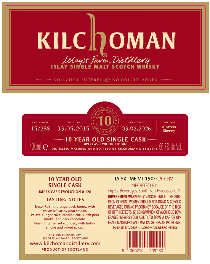 Kilchoman 10 yo Oloroso Sherry Single Cask 15/288 (ImpEx Cask Evolution 01/2026)
