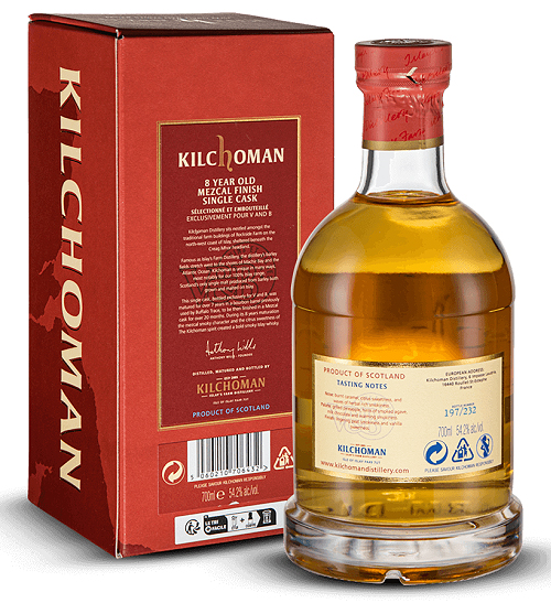 Nachdem die französische Getränkekette V & B (Vins et bières) Ende 2021 anlässlich ihres 20jährigen Bestehens u.a. drei exklusive Kilchoman-Einzelfassabfüllungen herausgebracht hatte, folgte ein Jahr später die hier genannte Mezcal Single Cask Release.