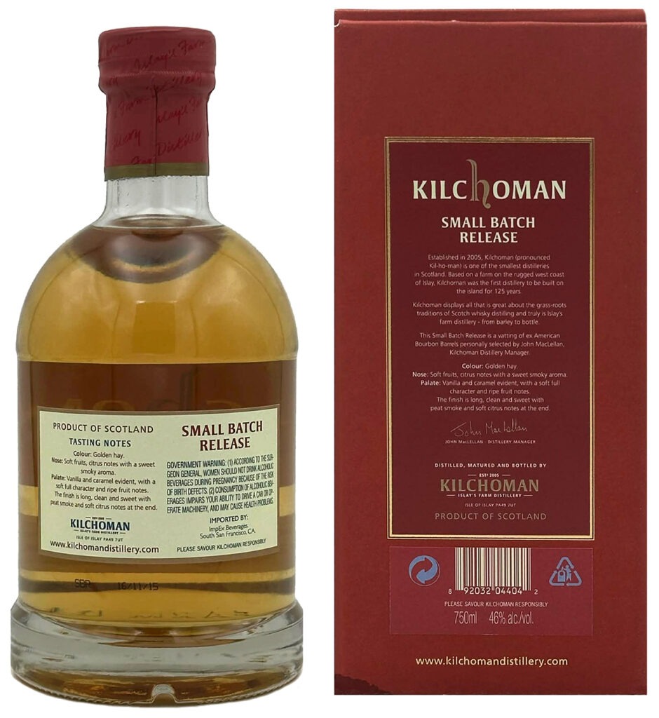 Im November 2015 ließ der US-amerikanische Kilchoman-Importeur ImpEx Beverages erstmals eine Small Batch Release für die USA abfüllen. Die Bezeichnung No. 1 lässt darauf schließen, dass ursprünglich eine Reihe solcher Abfüllungen geplant war, was aber nicht umgesetzt wurde. Erst Jahre später erschienen in den USA dann zahlreiche Small Batch Releases in der von Kilchoman kreierten Reihe Small Batch Releases für ausgewählte Märkte.
