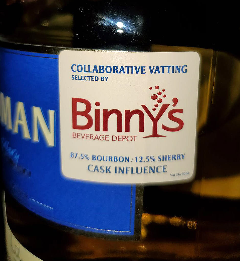 Binny´s Beverage Depot, gegründet im Jahre 1948, ist die größte Wein-, Bier- und Spirituosen Supermarktkette im mittleren Westen der USA mit 45 Geschäften in Illinois. Binny´s veröffentlichte schon recht häufig exklusive Kilchoman Einzelfassabfüllungen und auch am Machir Bay Collaborative Vatting Programm beteiligte man sich 2020 mit der hier genannten Abfüllung mit einem Fassanteil von 85% Bourbon und 15% Sherryanteil.